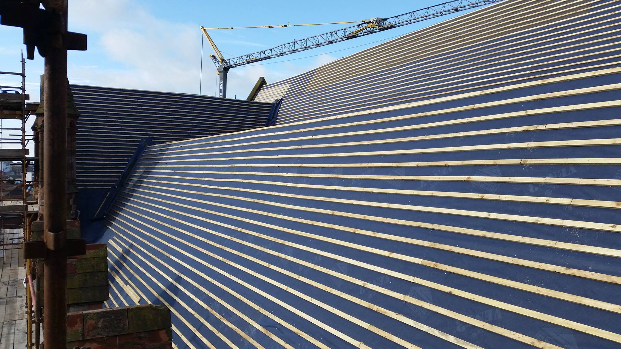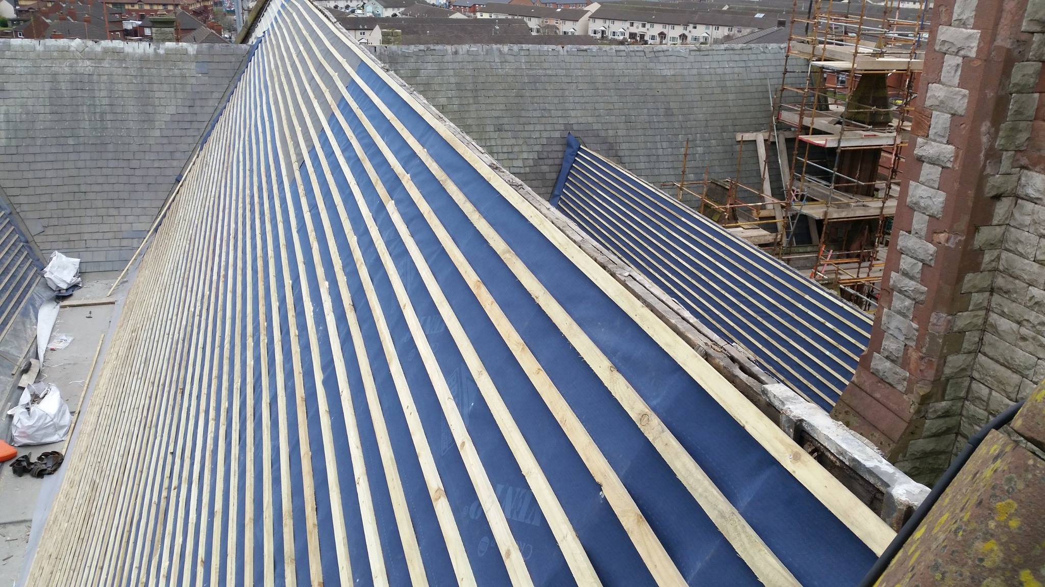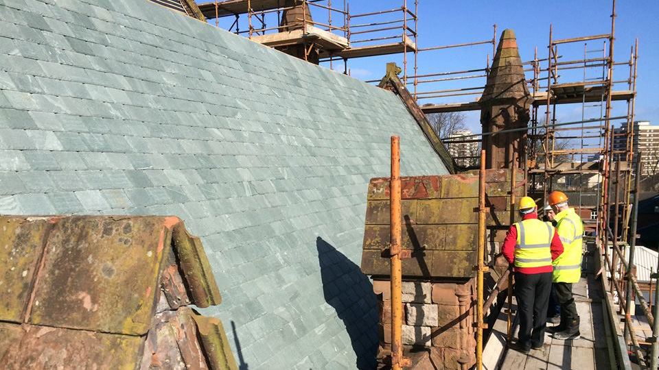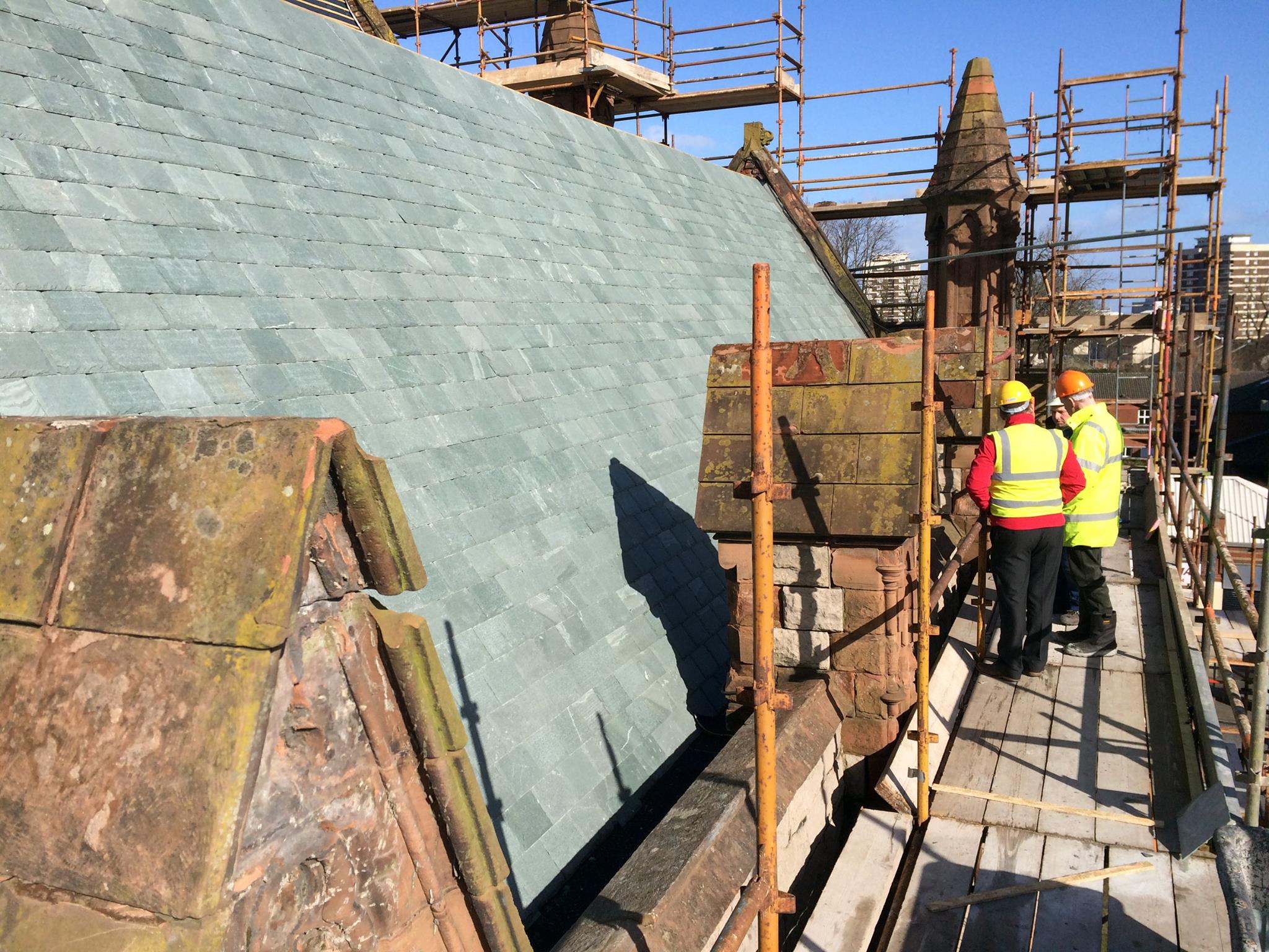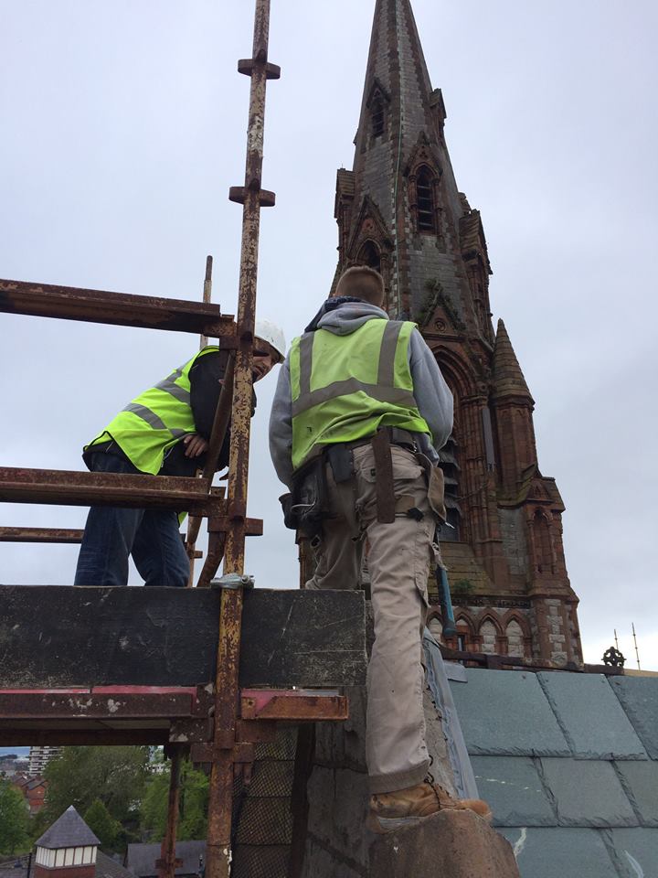27,000 new Westmorland Green Roofing Slates for the re-slating of the historic Carlisle Memorial Church in North Belfast. The distinctive Grey/Green hue of the Westmorland slate is now once again visible on completed sections of the roof. It is, as far as we know, one of the largest Westmorland Green restoration projects, in Ireland, in the last ten years.