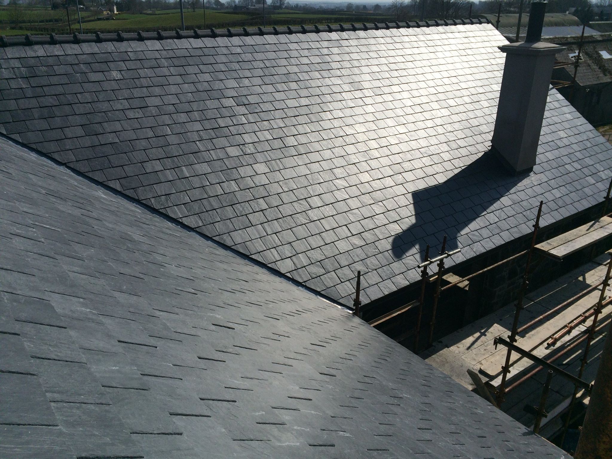 Roof supplied and fitted by Valley Roofing with the Lagan Building Solutions (LBS) Rozadias natural slate in Ballymena for Sean McKee Construction.