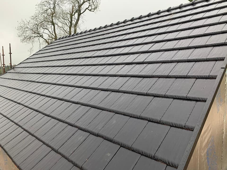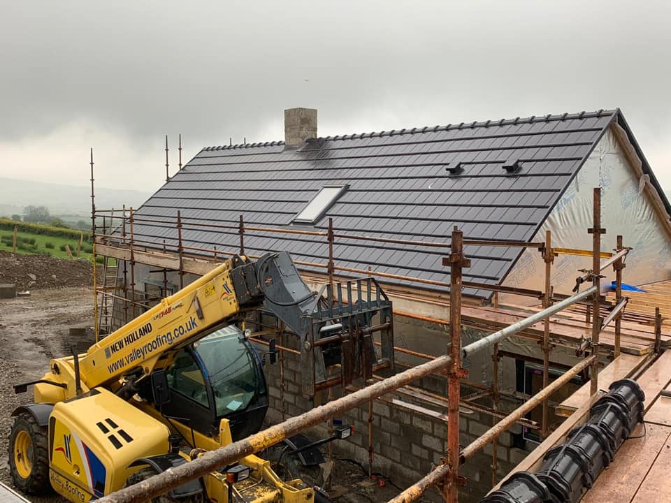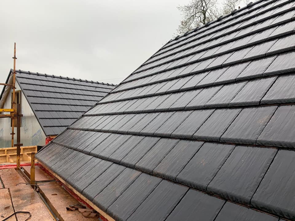 Private development supplied and fitted with Lagan Building Solutions (LBS) Snowden clay tile and ridge.