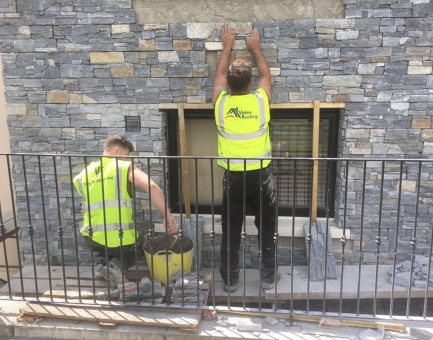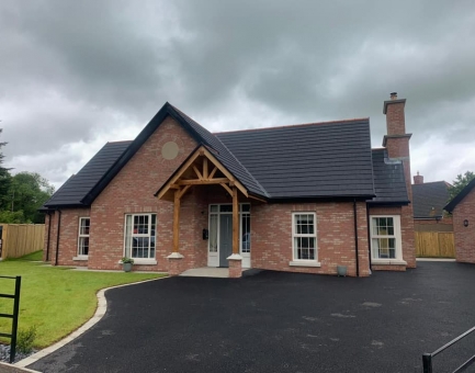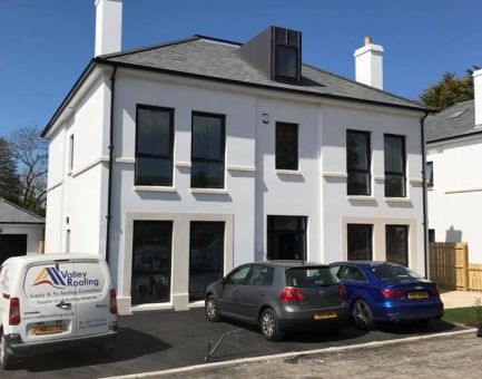Product(s): Condron flat black tile, Tegral Thrutone slates, Dry verge, Trusses